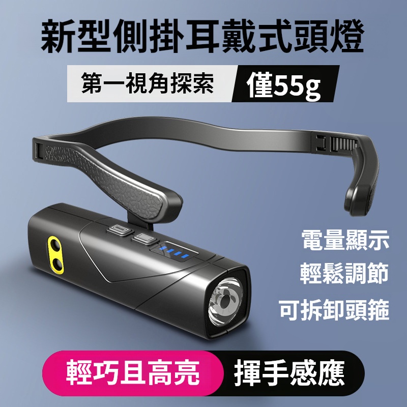 USB充電戶外夜釣夜跑耳戴式LED頭燈✅人體工學設計 | 輕羽級設計✅高亮LED燈芯 | 螺旋光學設計✅可調節頭箍 | 鬆緊自由調節