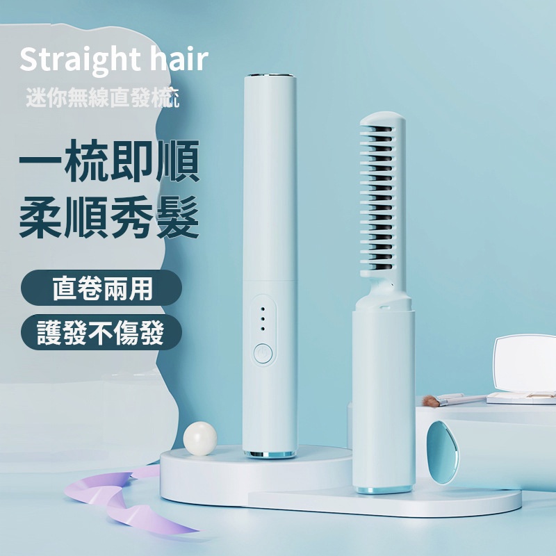 無線小型USB充電直發梳✅3D護髮梳齒 | 每髮絲都要柔護✅護髮陶瓷塗層 | 造型不傷髮✅輕巧機身舒適握感 | 防燙設計更安心