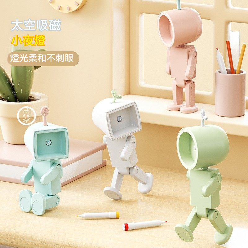 太空人磁吸小夜燈✅造型可愛 | 手腳可擺動✅既是小夜燈也是手機支架 | 萌趣造型 溫馨夜燈✅燈光柔和不刺眼 | 底部吸磁穩固不晃動