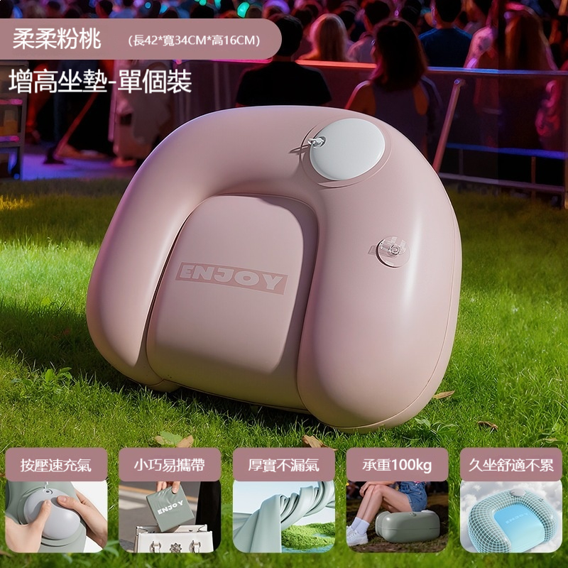 新款音樂節充氣坐凳✅ 按壓充氣,免嘴吹免工具 → 手掌按壓頂部氣閥,30秒左右就飽滿,小朋友也能操作 ✅ 加厚材質,耐重不破 → 高強度PVC或TPU,承重可達100公斤以上,坐穩穩 ✅ 柔軟有彈性 → 坐起來像懶骨頭,比直接坐草地、水泥地舒服太多 ✅ 放氣一秒折疊 → 打開氣閥,空氣瞬間排出,摺起來比手掌還小