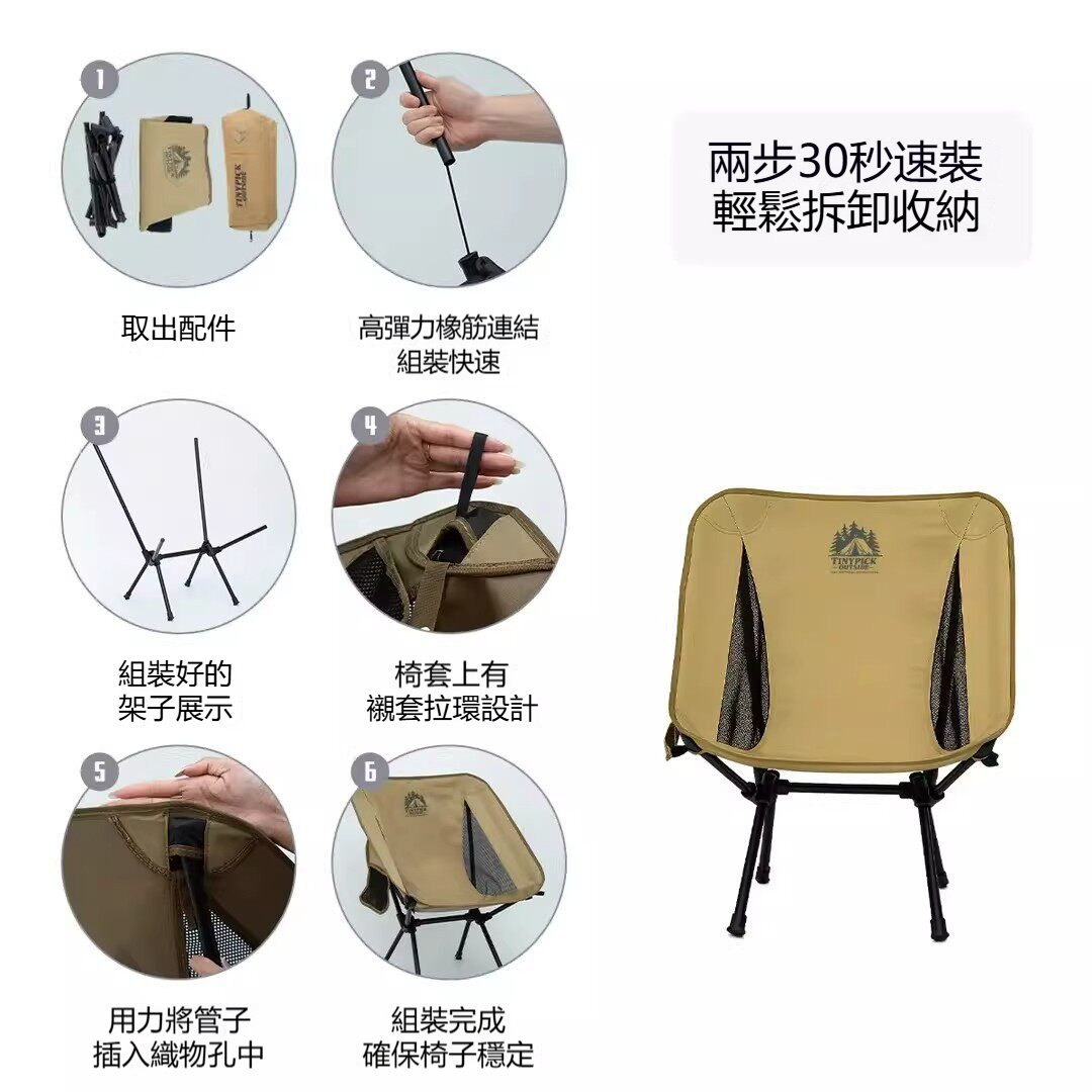 雙腳太空椅/戶外月亮椅(露營折疊便攜/野營休閒椅/輕量隨身椅)✅ 太空椅造型,坐感超包覆 → 弧形椅面像被抱住,坐下去就不想起,真的像飄在太空 ✅ 雙腳結構,穩固耐重 → 兩根強化鋁合金或鋼管支撐,底部加寬,耐重可達100公斤 ✅ 月亮椅經典設計 → 低重心、寬椅面,盤腿坐也沒問題,露營界口碑款