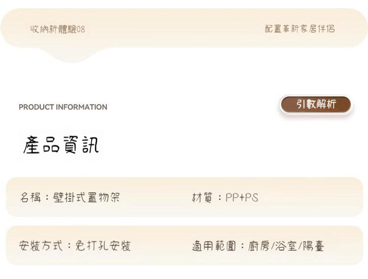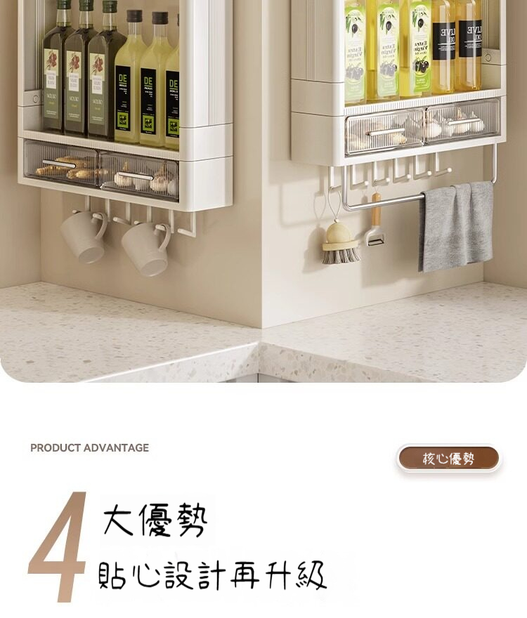 免打孔壁掛式廚房置物架✅ 免打孔免鑽牆 → 強力無痕膠一貼就牢,退租不殘膠 ✅ 承重可達5~10公斤 → 掛醬油罐也沒問題 ✅ 多功能合一 → 調味罐架、鍋蓋架、工具掛鉤、紙巾架、筷子筒、刀具架自由組合 ✅ 壁掛式設計 → 釋放檯面空間,切菜備料不再卡卡