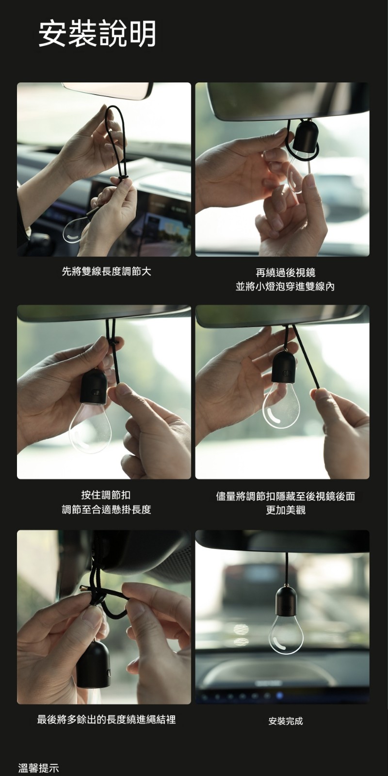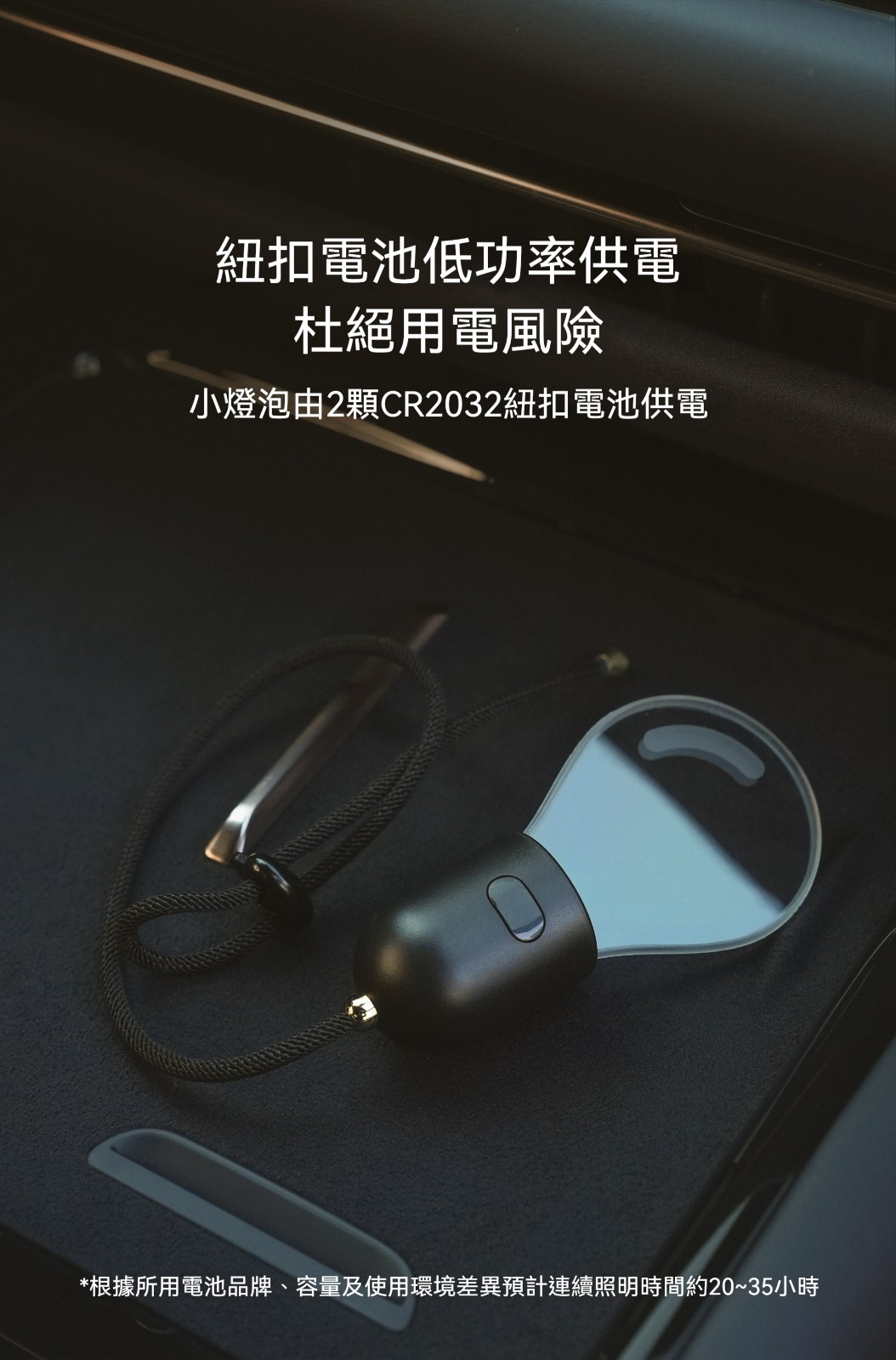 車載發光小燈泡✅長按可雙色切換 | 暖白光/暖黃光✅米蘭尼斯首飾繩材質 | 金屬長度調整扣✅紐扣電池低功率供電 | 杜絕用電風險