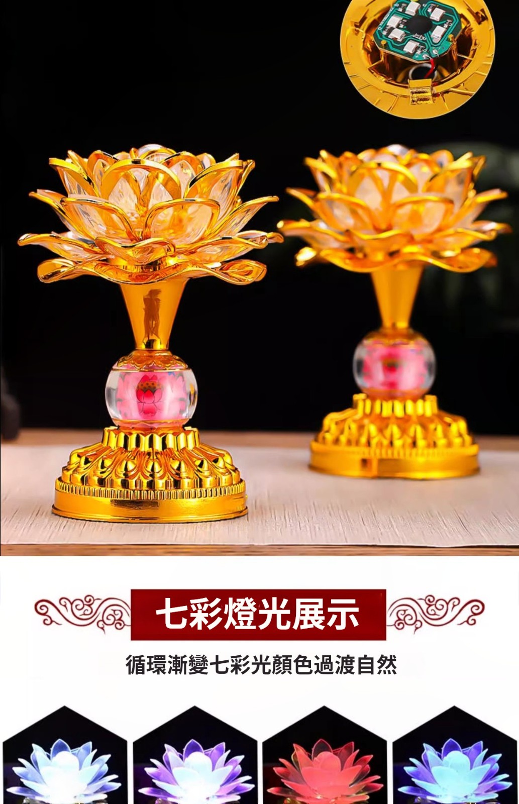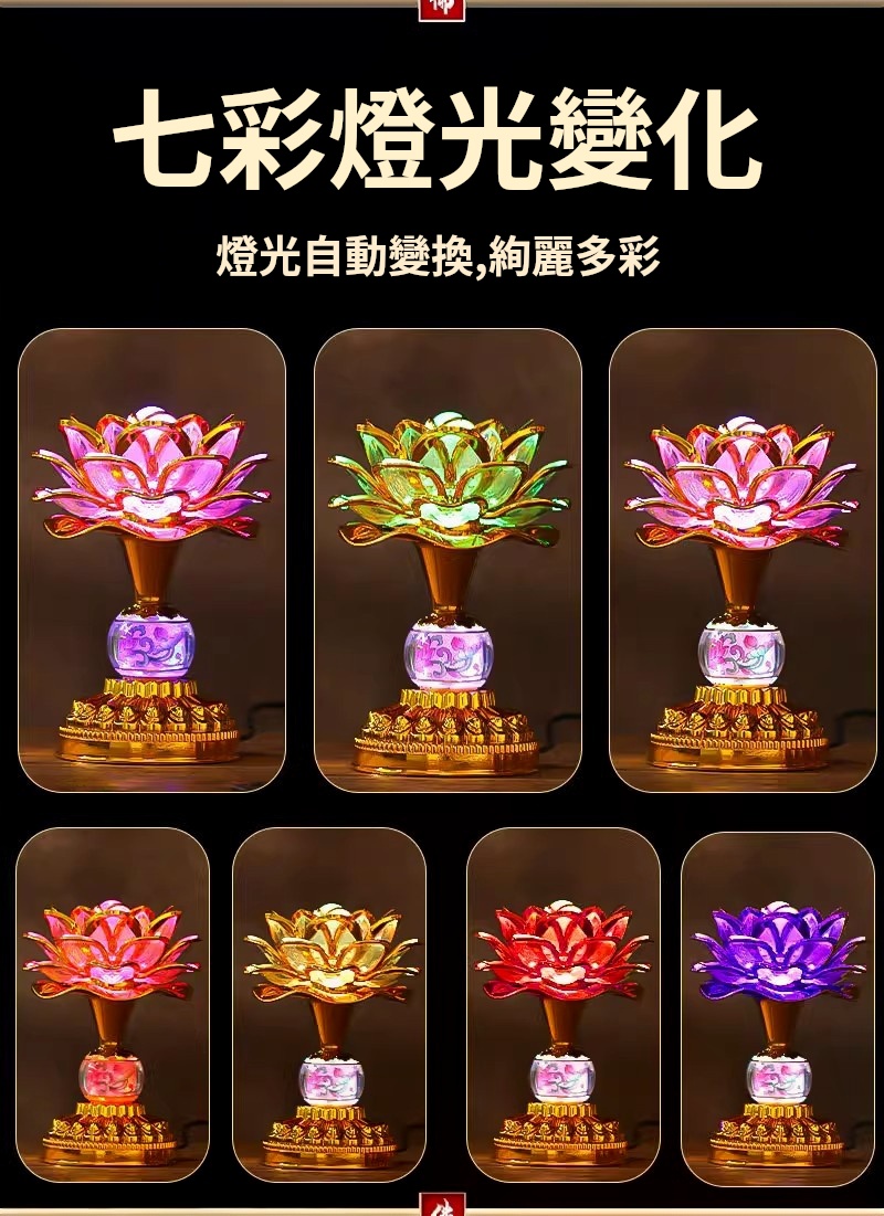 七彩蓮花led燈✅精緻花瓣 | 莊嚴大氣✅花蓮設計 | 立體雕刻像真蓮綻放✅七色漸變柔光 | 自動循環