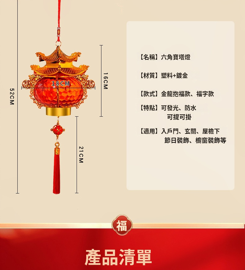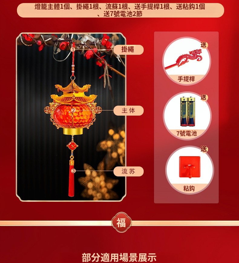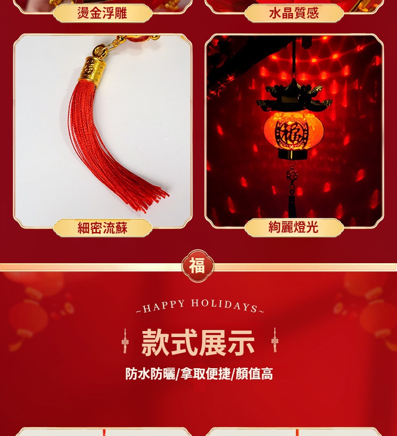 寶塔燈籠燈✅燙金浮雕 | 水晶質感✅細密流蘇 | 絢麗燈光✅防水防曬 | 拿取便捷 | 顏值高