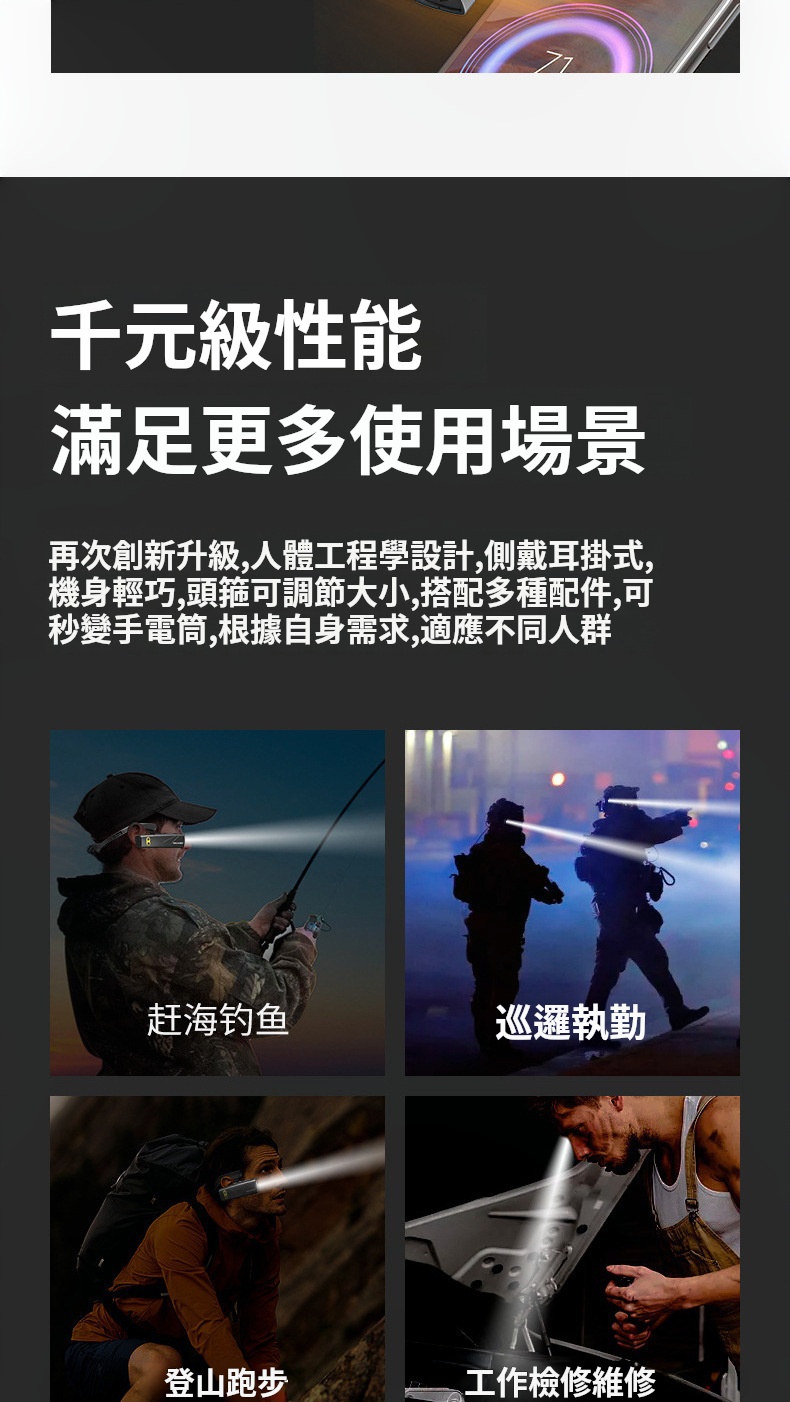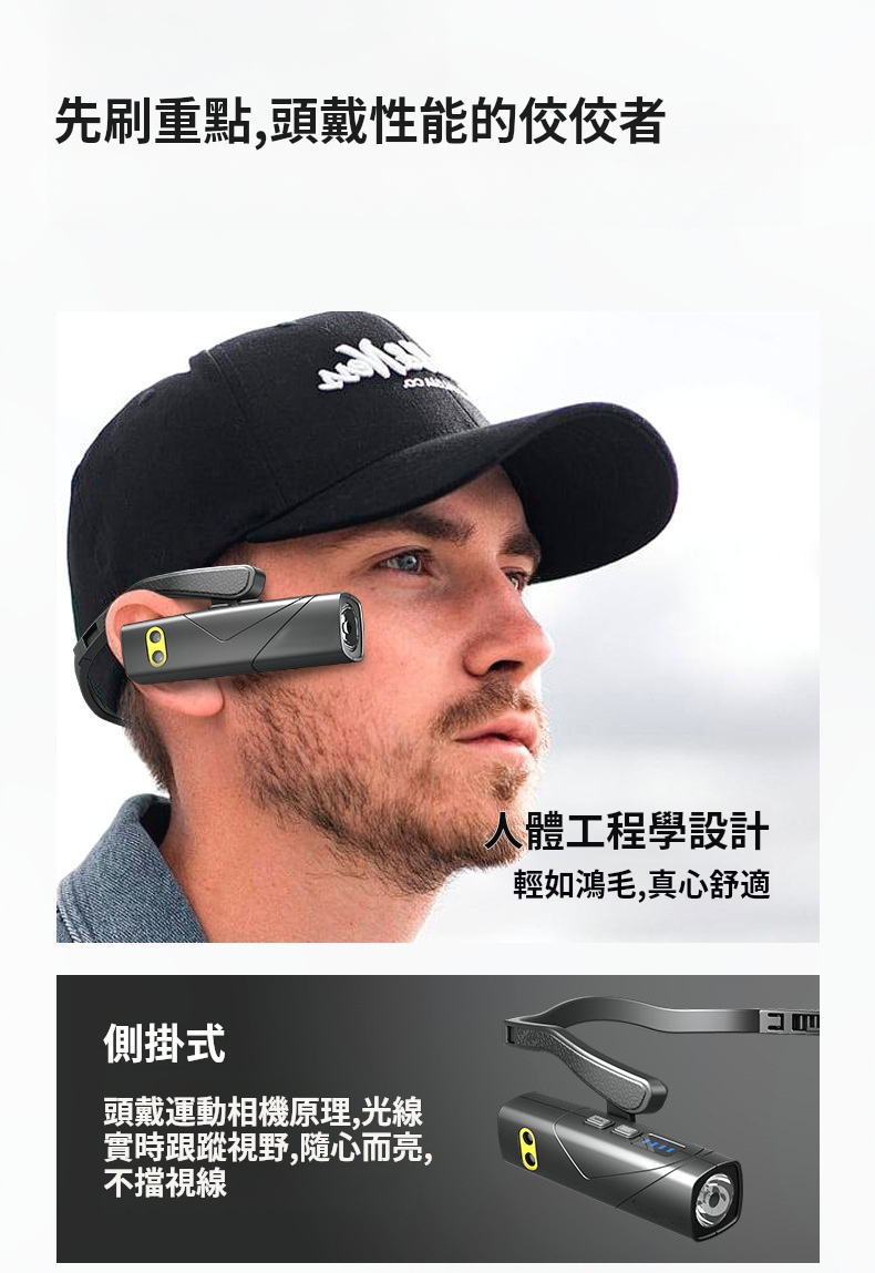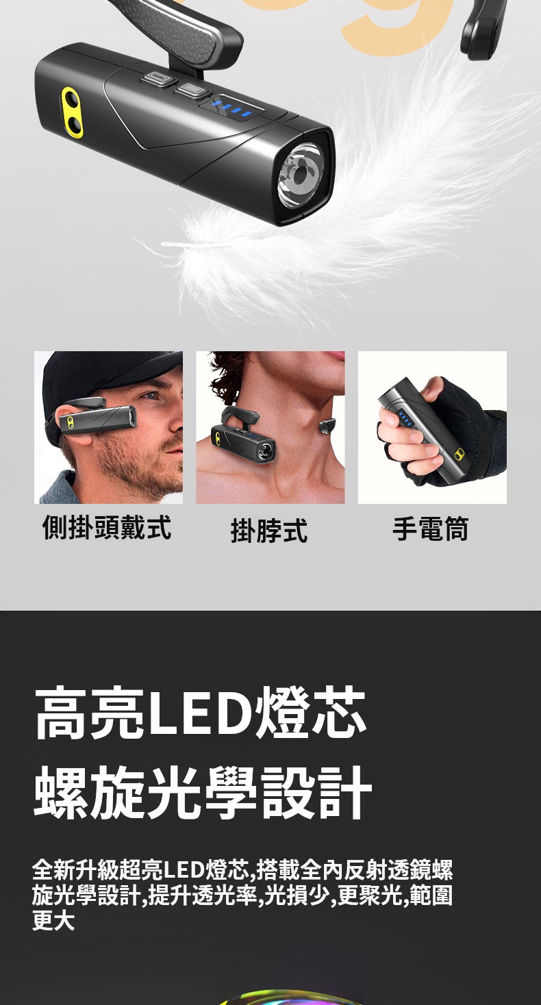 USB充電戶外夜釣夜跑耳戴式LED頭燈✅人體工學設計 | 輕羽級設計✅高亮LED燈芯 | 螺旋光學設計✅可調節頭箍 | 鬆緊自由調節