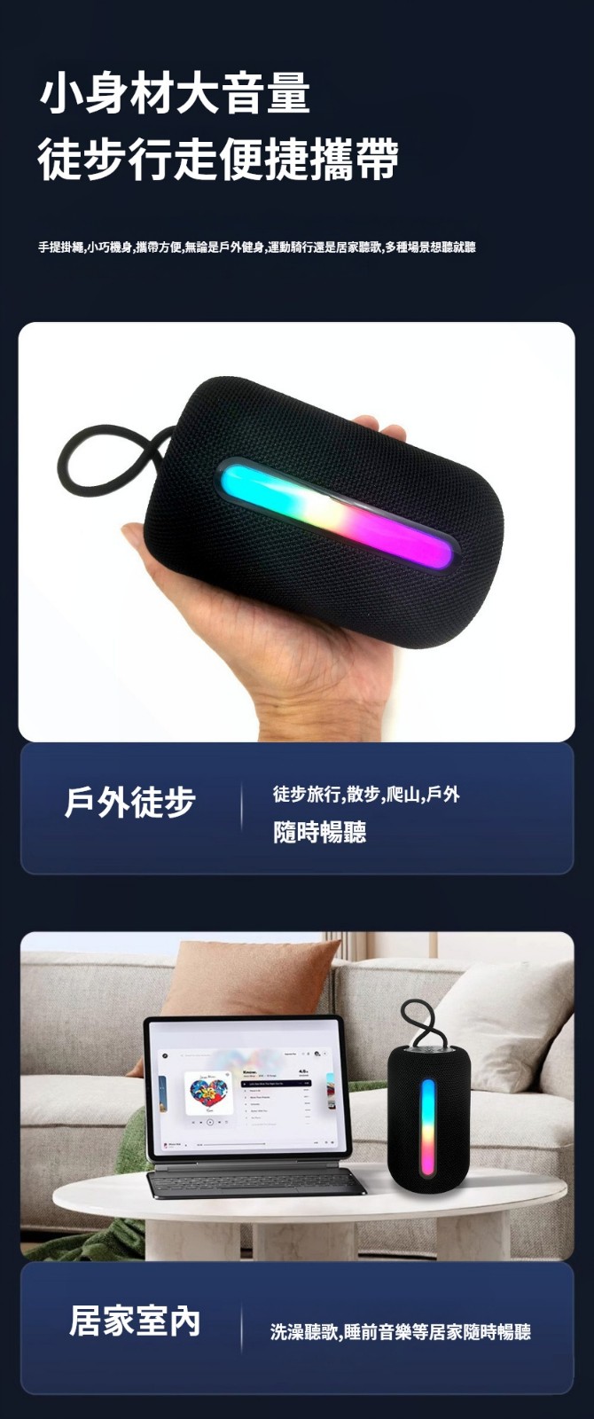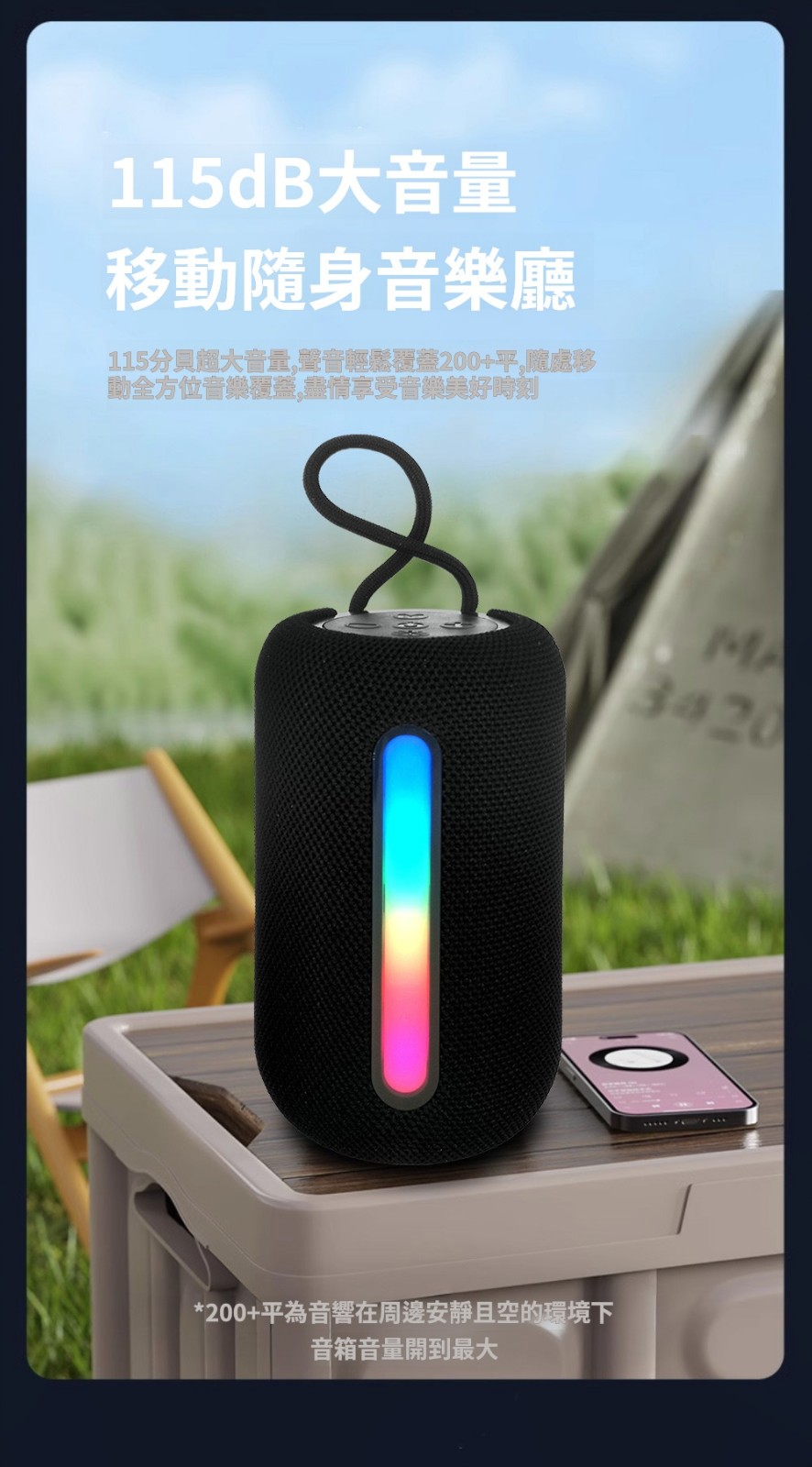 布藝戶外藍牙音響✅低頻脈衝技術 | 強低音喇叭✅115dB大音量 | 手機隨身音樂廳✅七彩炫燈 | 戶外號誌氛圍燈